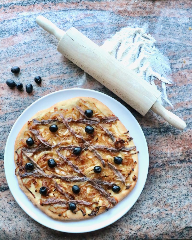 - Die Oliven sollten schwarze Oliven sein und ihr kauft am besten die authentischen Olives de Nice, sie harmonieren super mit salzigen Sardellen. Findet man leider nicht überall. Normale schwarze Oliven sind auch völlig ok. Im Supermarkt kann man vielleicht gute spanische Oliven wählen, die einen fruchtigen Kontrast zu den Zwiebeln darstellen.